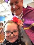 - Barry Mudd, Rev. John Schwartzlose, Mary Hynes, and servers.