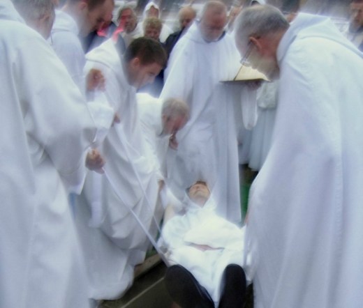 It was a surprise to enter the Abbey of Gethsemani’s church and see a body lying on a bier. Br. Harold was dressed in a white cowl and his face bore no signs of being made up by a mortician. He did not look like he was sleeping. He looked like what he was: dead.