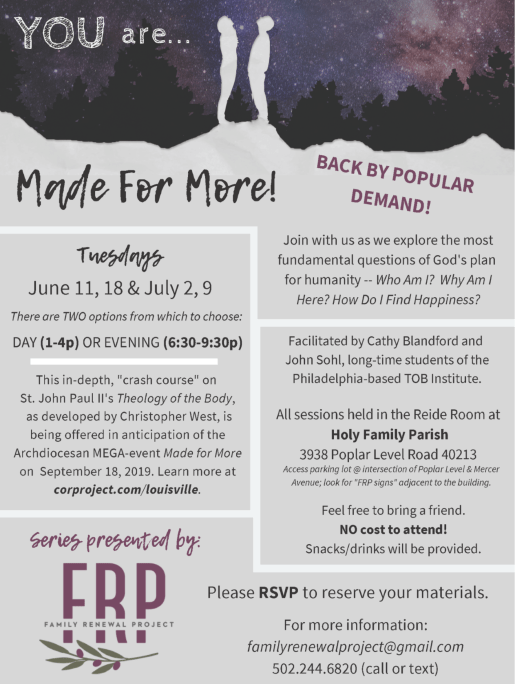 This event is eligible for catechist credit. Contact Lynn McDaniel in the Office of Faith Foramtion before attending for information about credit.
