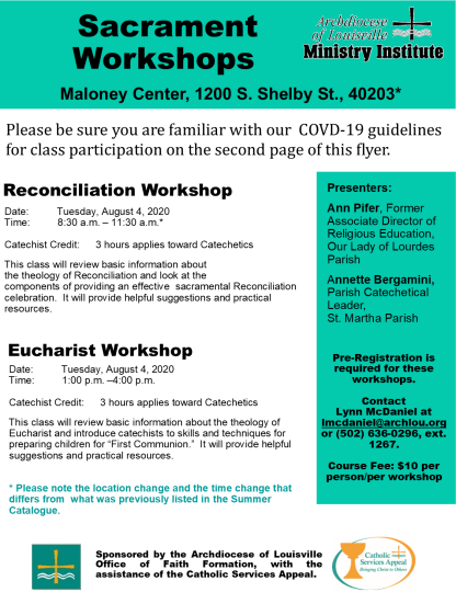 Lynn McDaniel, Catechetical Ministry: ext. 1267 lmcdaniel@archlou.org