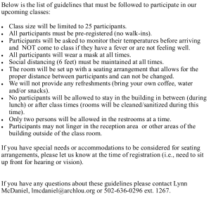 Sacrament Workshops COVID-19 guidelines
