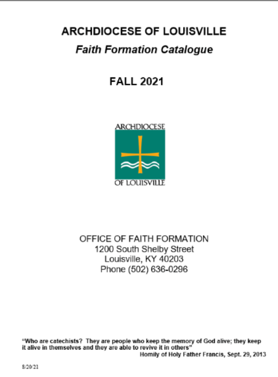The Fall Catalogue is now available. Formation opportunities will be held at the Maloney Center, the Catholic Enrichment Center, St. Bernard, St. Dominic and St. Michael. Click on the image below to go to the Catalogue Page to access the catalogue and to view our current COVID-19 guidelines.