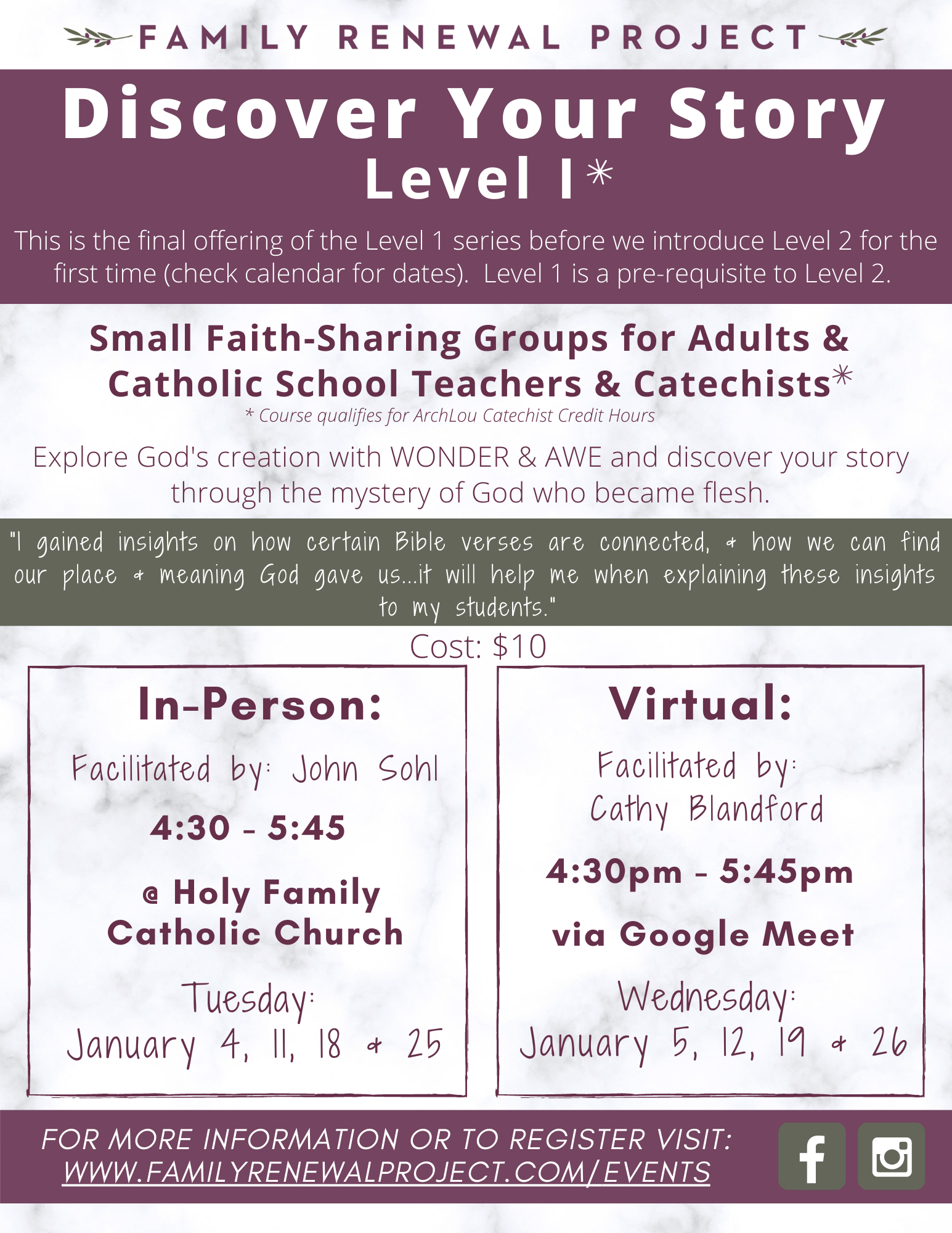 View the current class catalogue from the Office of Faith Formation.