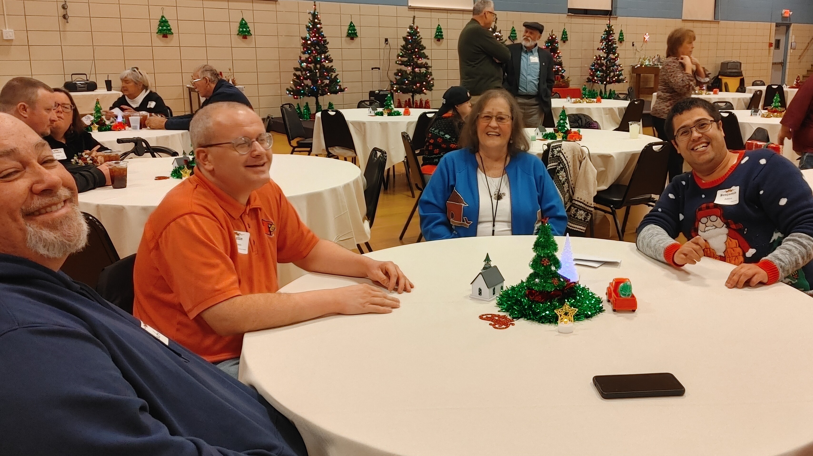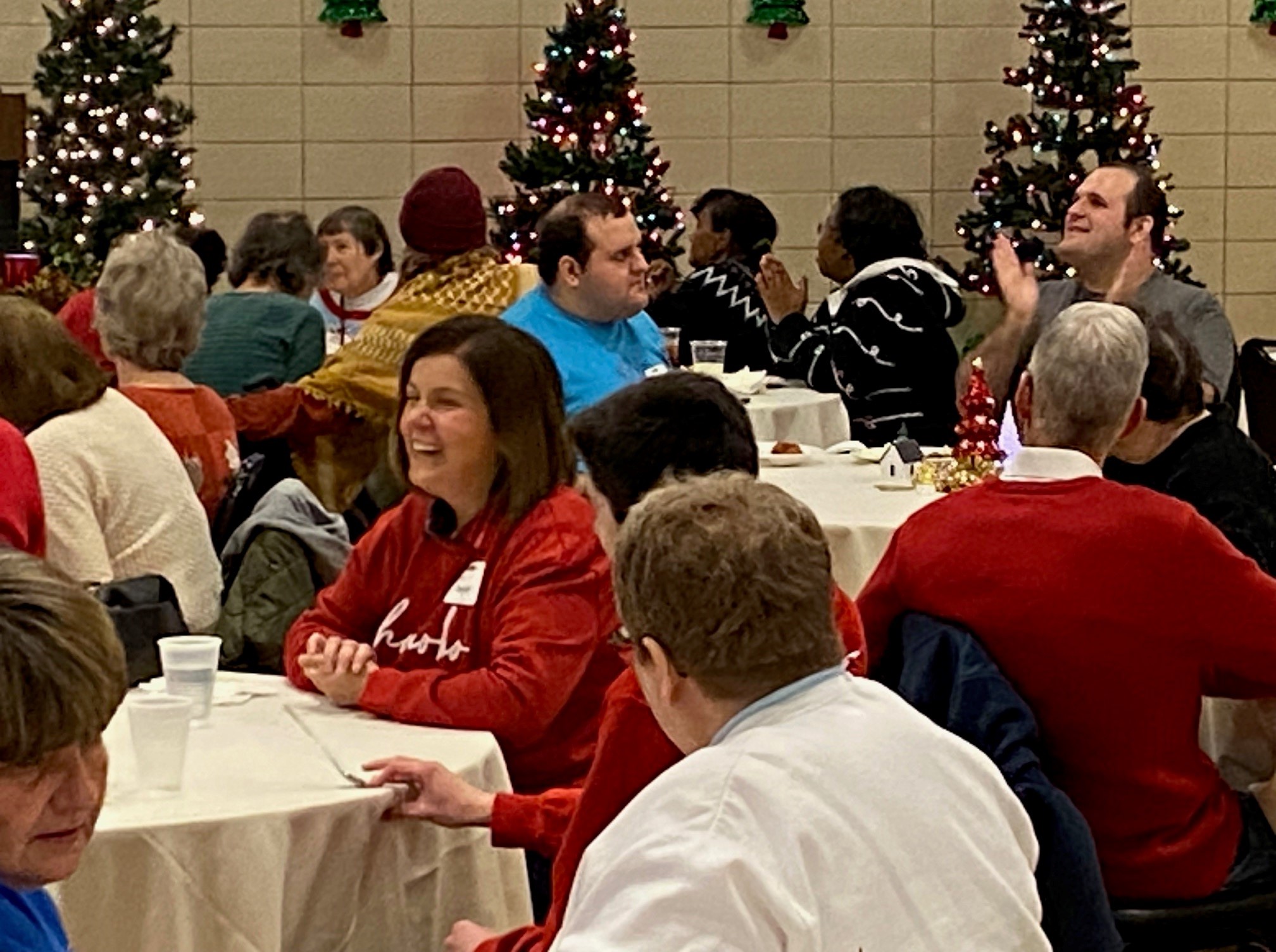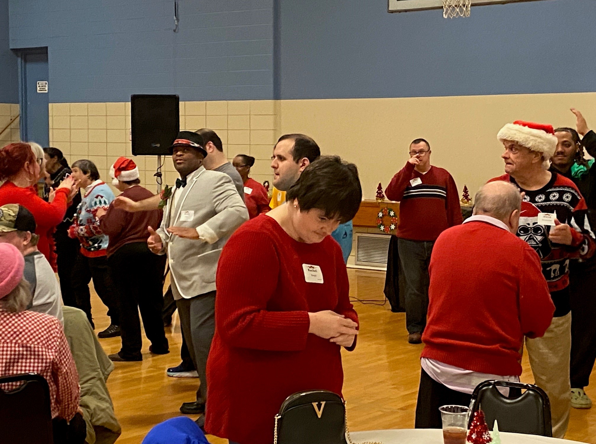 Over 100 people enjoyed the Faith Club Christmas Party this year! Prayers and Christmas carols were led by Santa himself (Jeff Wright)! Everyone shared a delicious dinner catered by Huber’s, and then danced the night away. One of our Faith Club members (Joey) even made gifts for everyone! This is a yearly tradition for him and reminds us of Jesus’ unconditional love for us. We currently have Faith Clubs for our adults with disabilities meeting at Ascension, Our Lady of Lourdes, Flaget, St. Francis of Assisi, and St. Thomas in Bardstown. The Christmas Party is one of three much-anticipated events we sponsor to bring everyone together! Please contact us if you have a potential member or if you would like to get involved. We love our Faith Club members and leaders!
