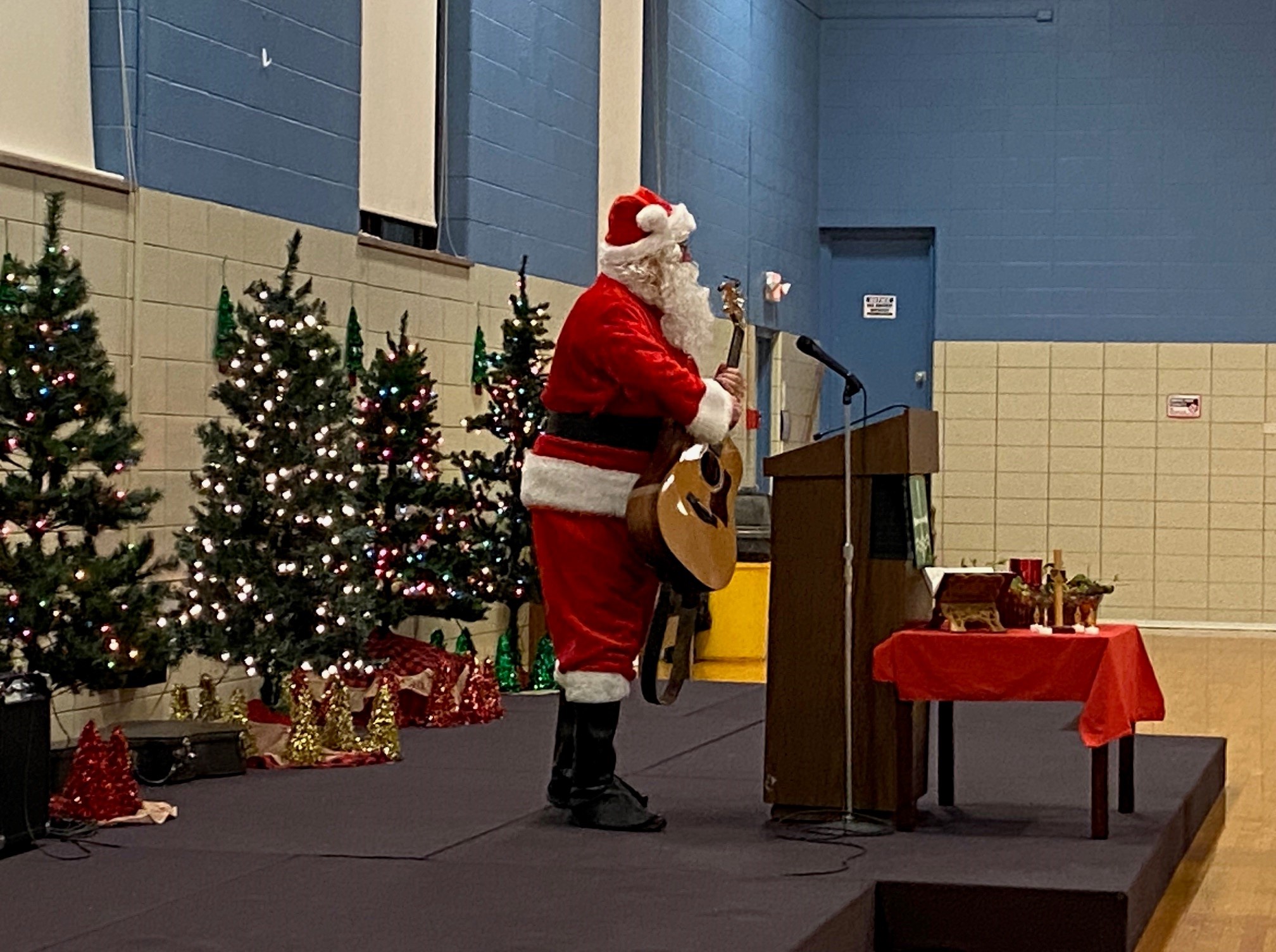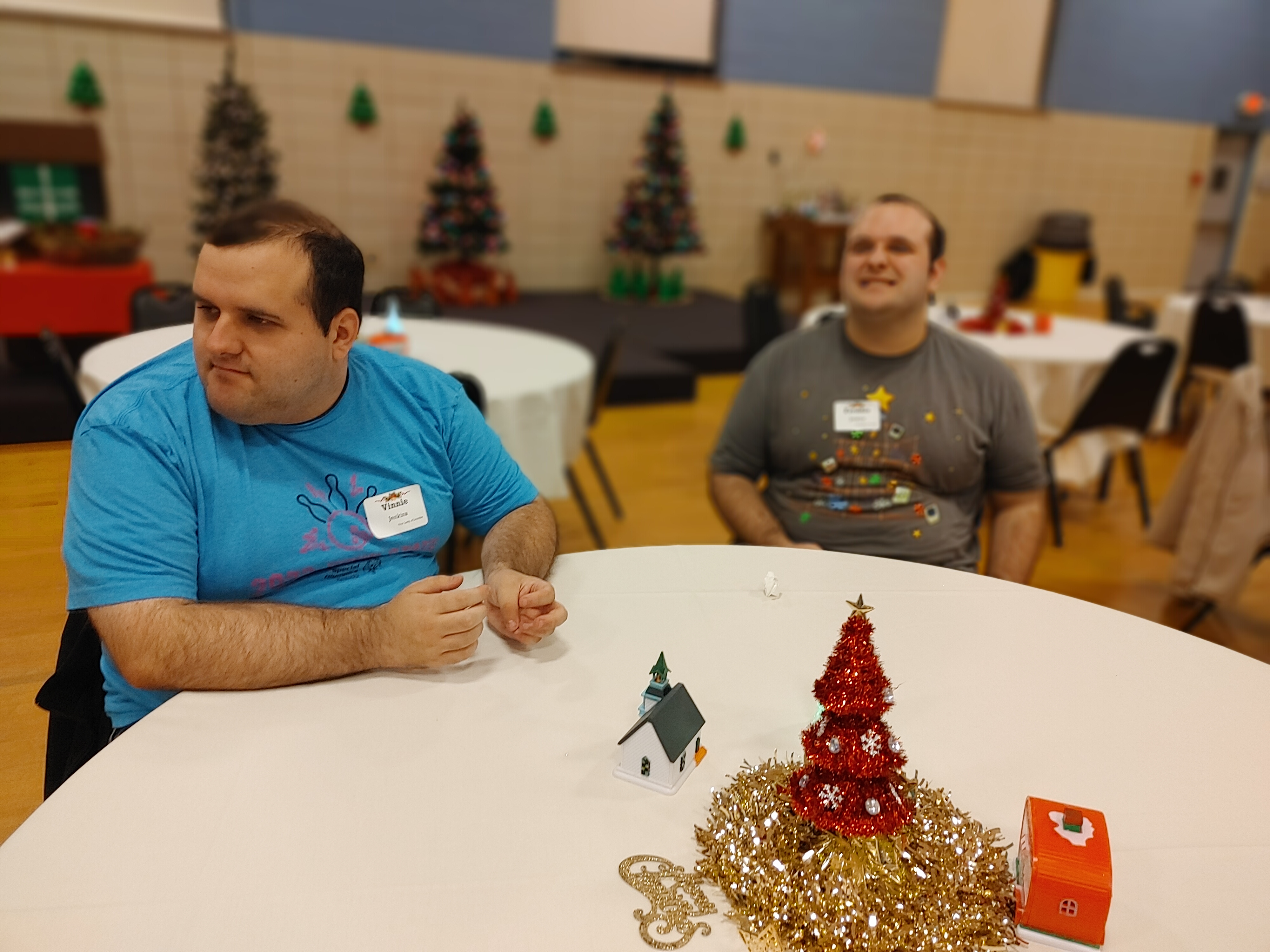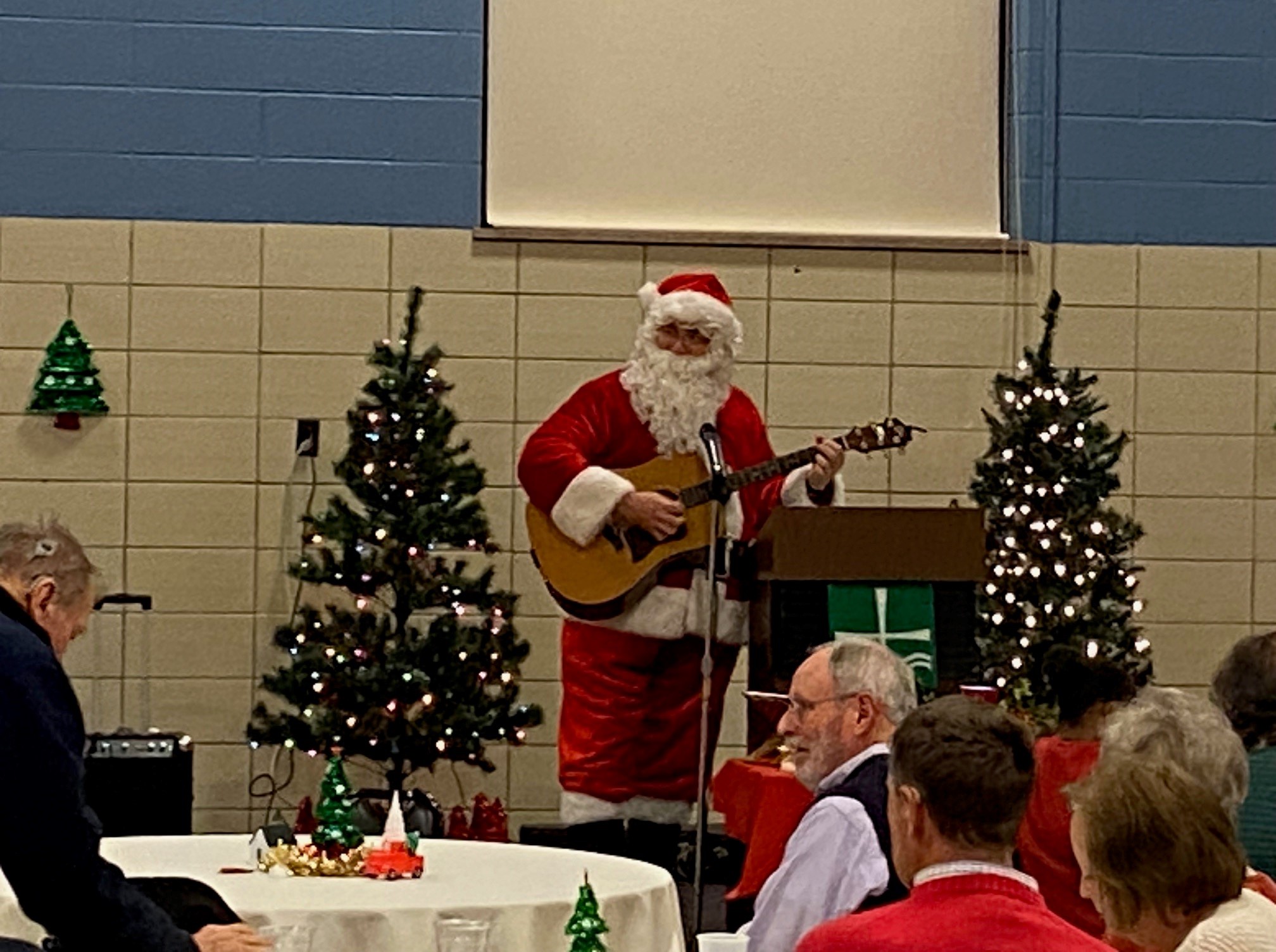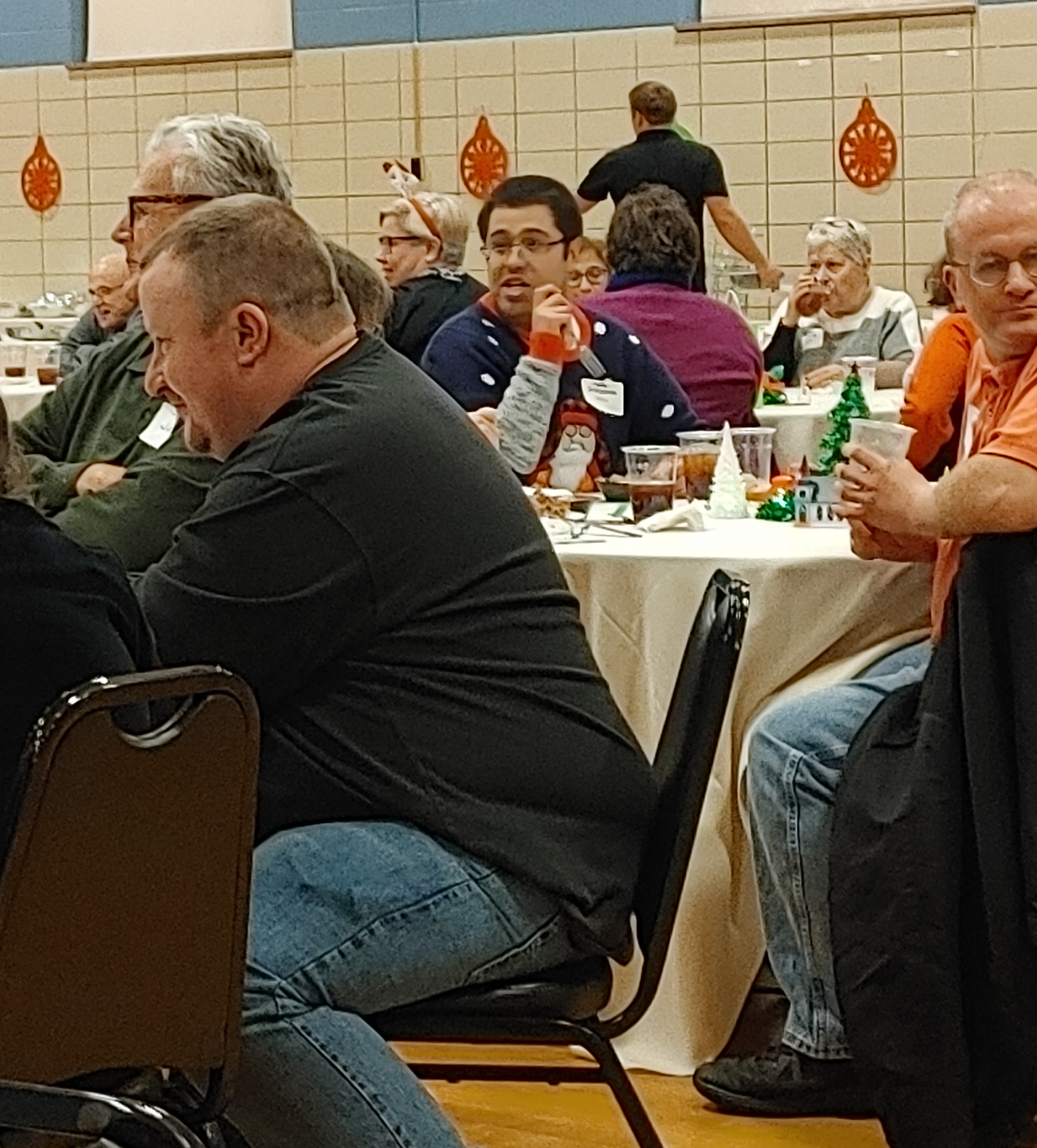 Over 100 people enjoyed the Faith Club Christmas Party this year! Prayers and Christmas carols were led by Santa himself (Jeff Wright)! Everyone shared a delicious dinner catered by Huber’s, and then danced the night away. One of our Faith Club members (Joey) even made gifts for everyone! This is a yearly tradition for him and reminds us of Jesus’ unconditional love for us. We currently have Faith Clubs for our adults with disabilities meeting at Ascension, Our Lady of Lourdes, Flaget, St. Francis of Assisi, and St. Thomas in Bardstown. The Christmas Party is one of three much-anticipated events we sponsor to bring everyone together! Please contact us if you have a potential member or if you would like to get involved. We love our Faith Club members and leaders!