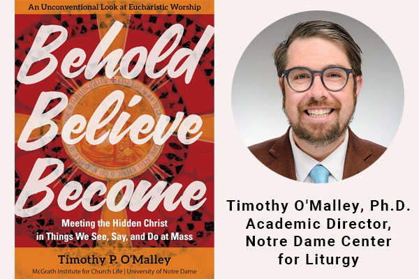Timothy P. O’Malley will discuss his new book, Behold, Believe, Become: Meeting the Hidden Christ in Things We See, Say, and Do at Mass, sharing his insights in an informal conversation. You can attend the event in person or online. Details forthcoming the week of April 8.