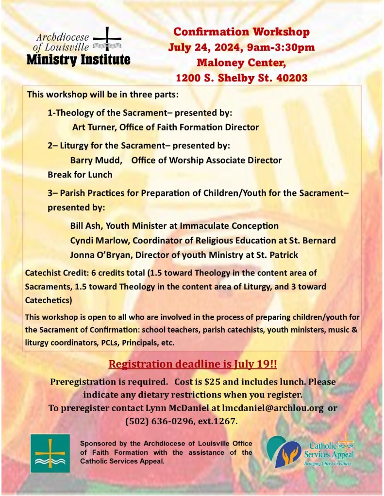 Lynn McDaniel, Catechetical Ministry: ext. 1267