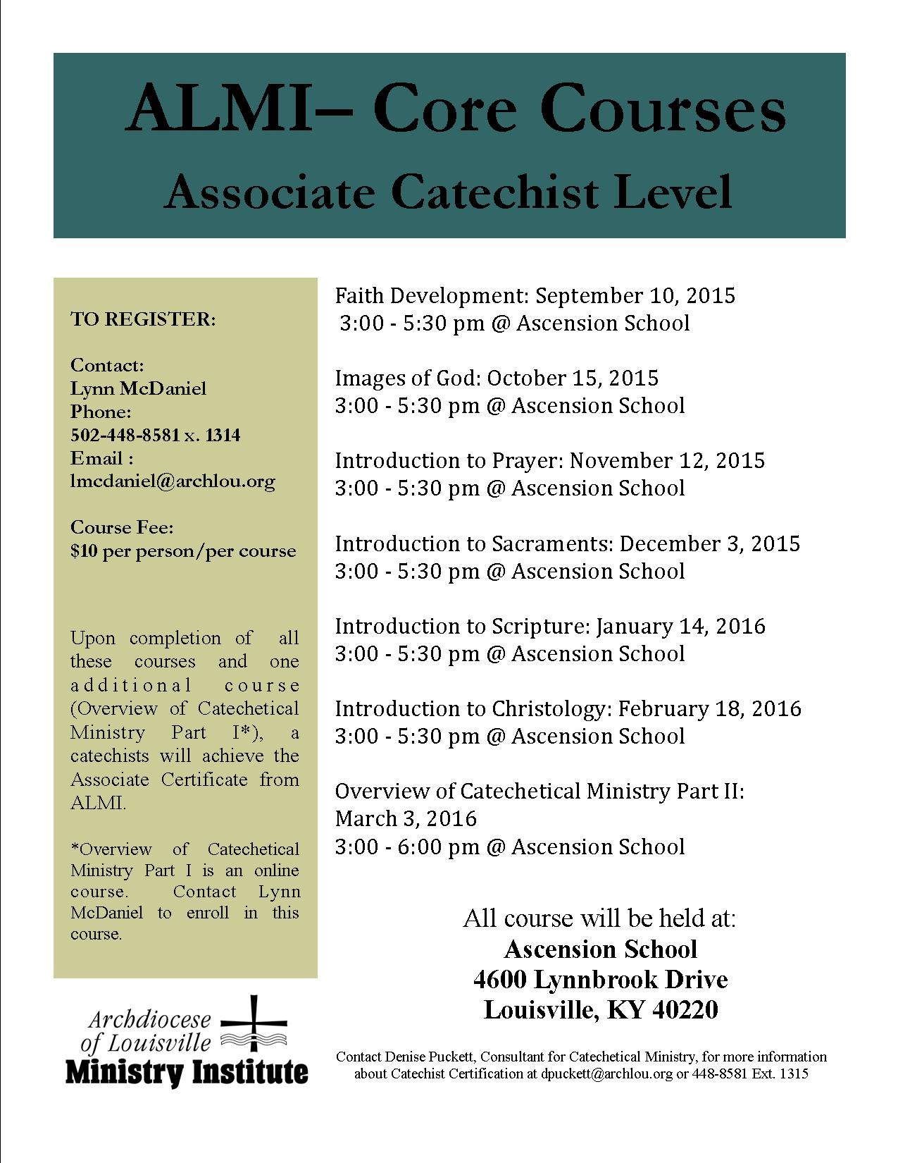 Catechist Credit: 2.5 hours applies toward the Associate Level in the content area of Faith Development or 2.5 hours applies toward Catechetics