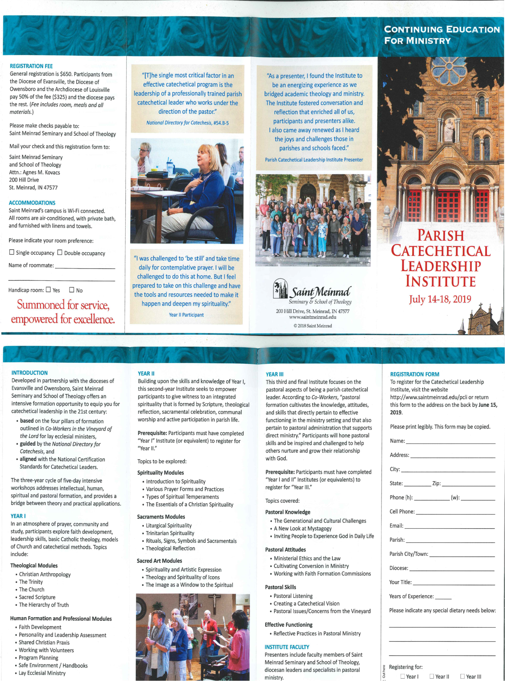 To register for the Parish Catechetical Leadership Institute: